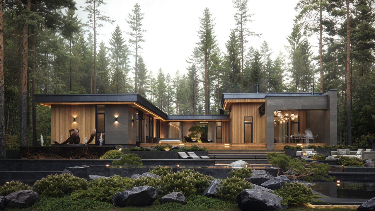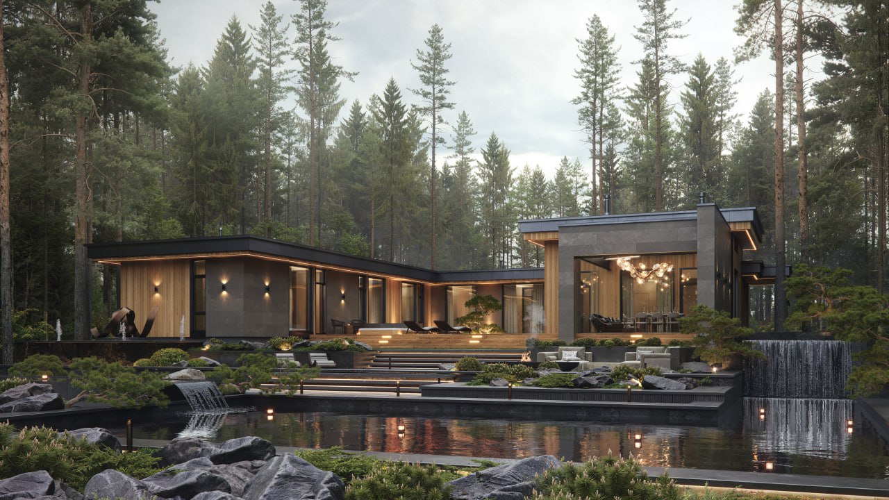 Дом развёрнут к воде и лесу так, чтобы каждый день начинался с естественного света.