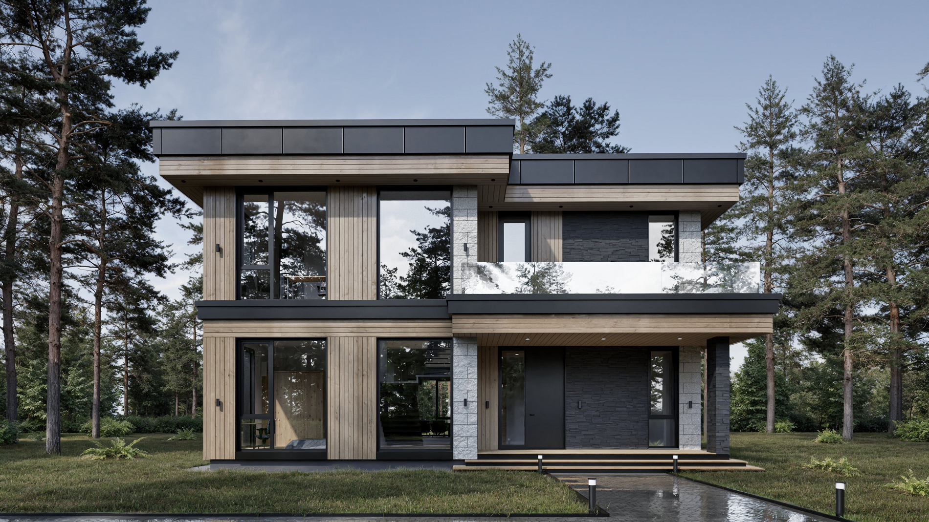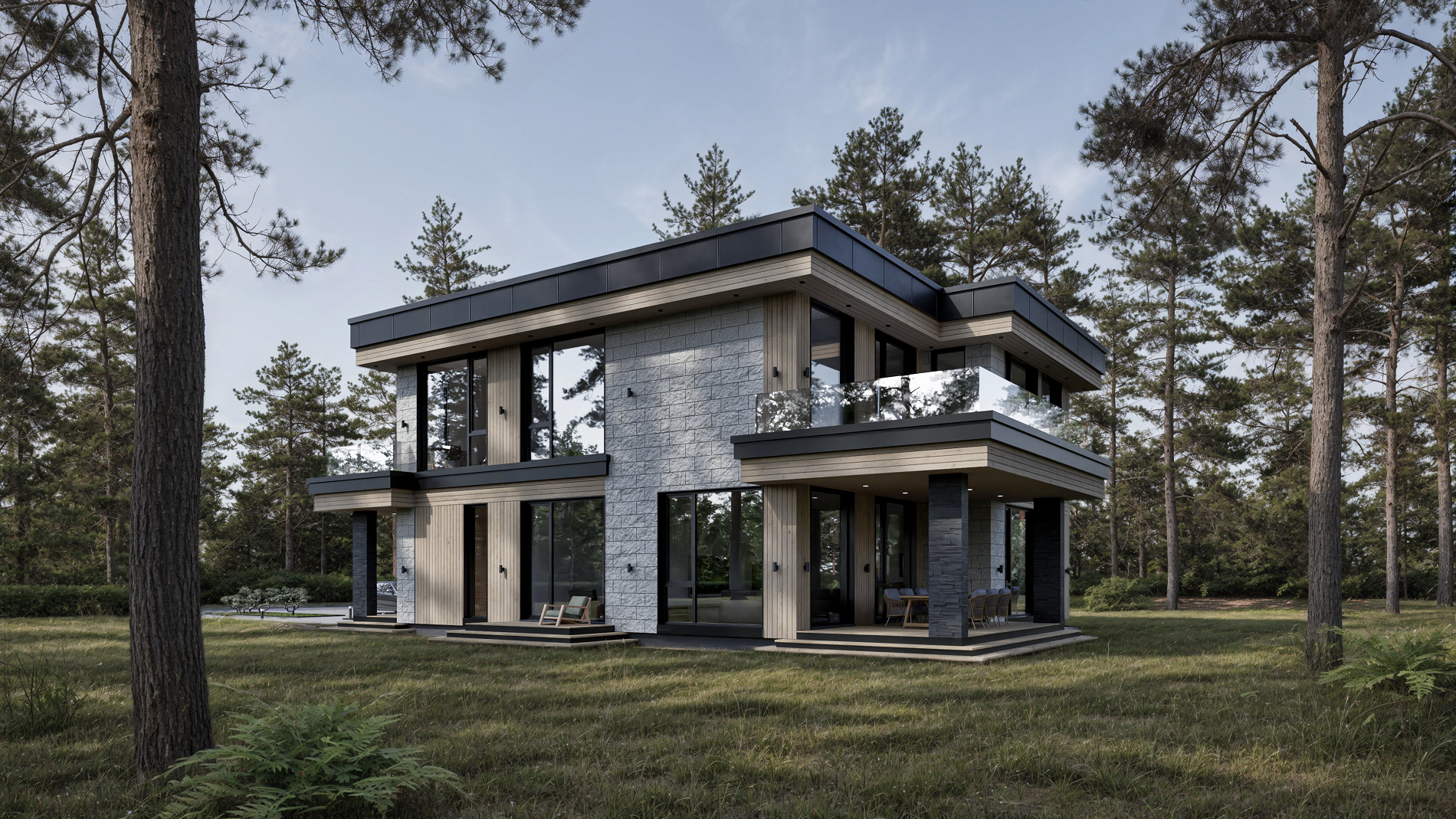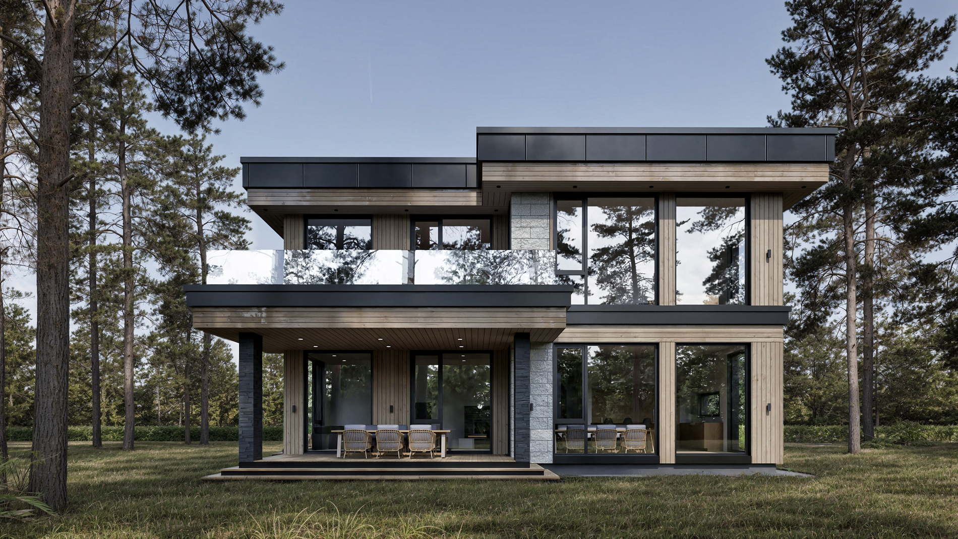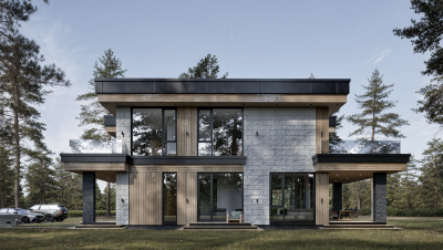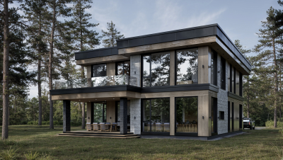 Villa ORION — современный жилой дом площадью 420,8 м², построенный из CLT-панелей с утеплением.